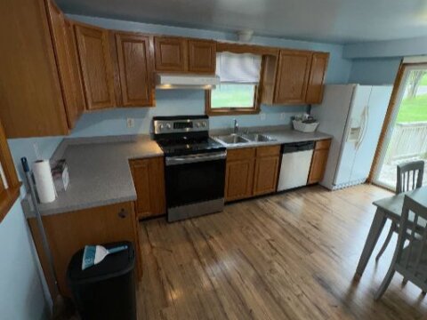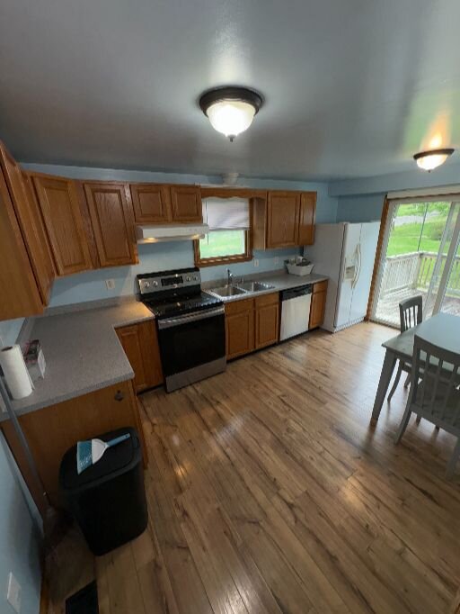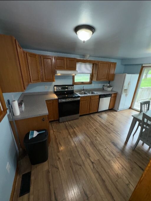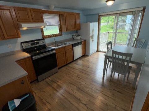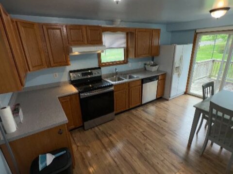 • Hardwood floors + newer vinyl flooring in good shape