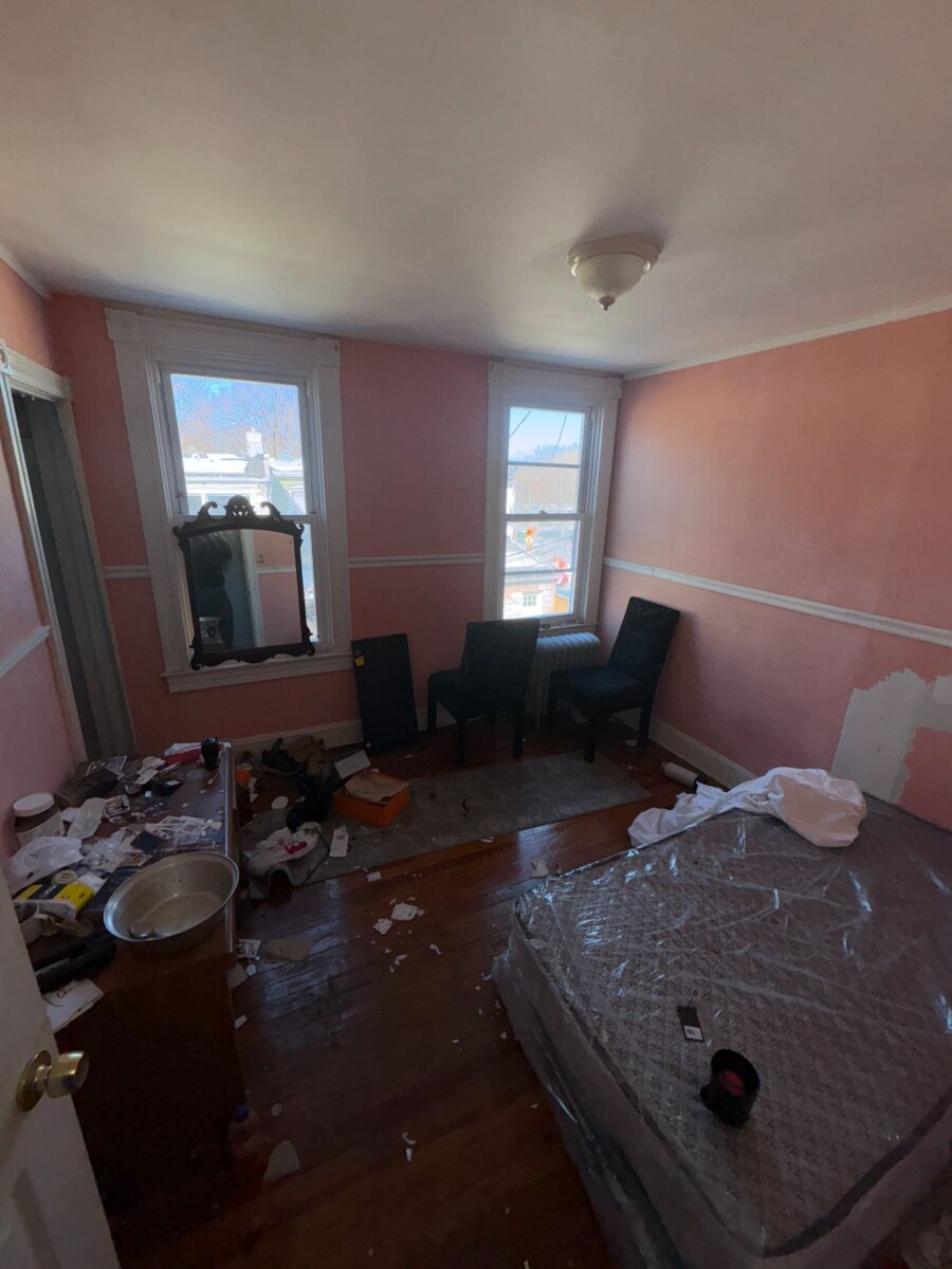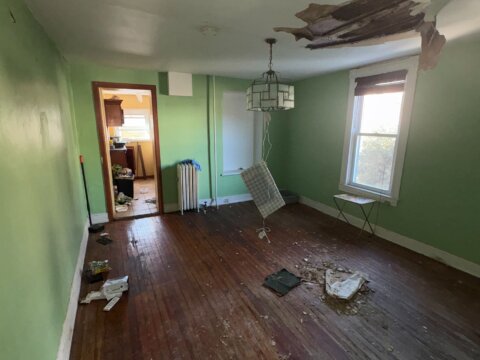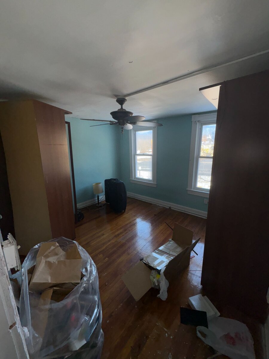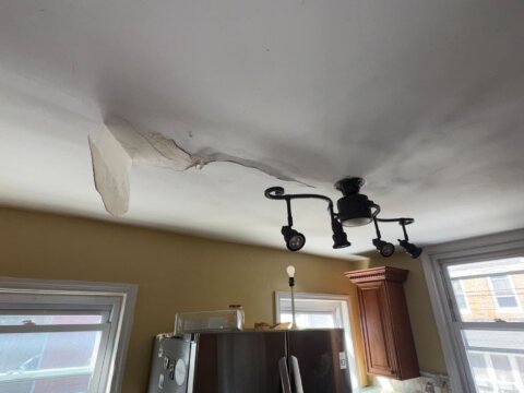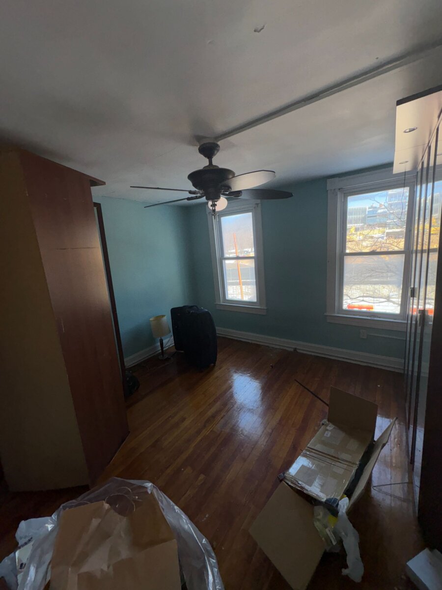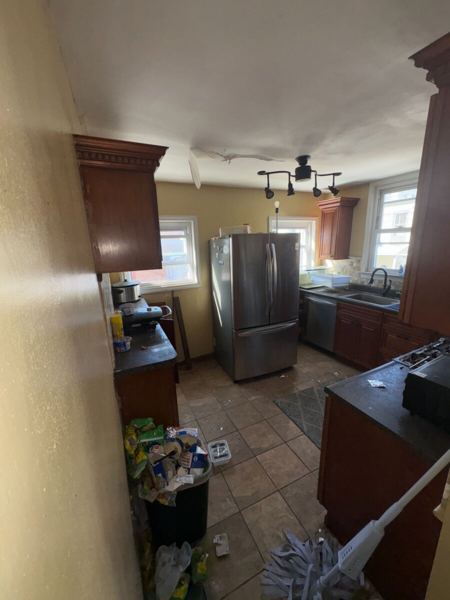 - Roof repair/replacement needed (visible sagging from prior leak)